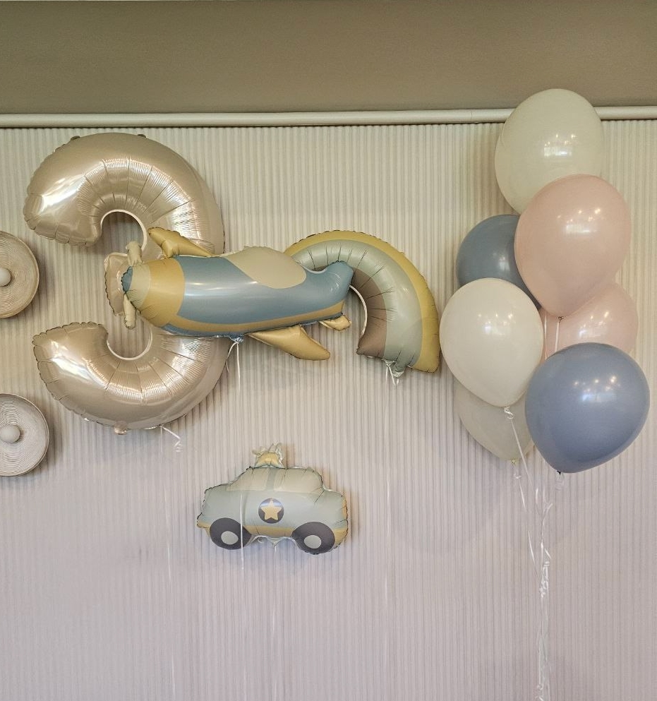Состав: фольгированная цифра, фольгированные фигуры, латексные шары, груз для удержания композиции.