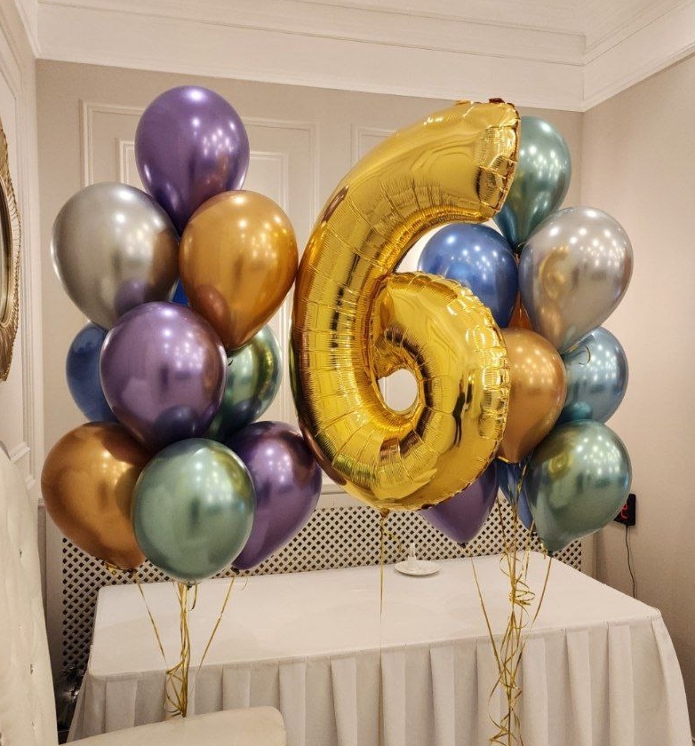 Состав: фольгированная цифра, шары хром,  груз для удержания композиции.