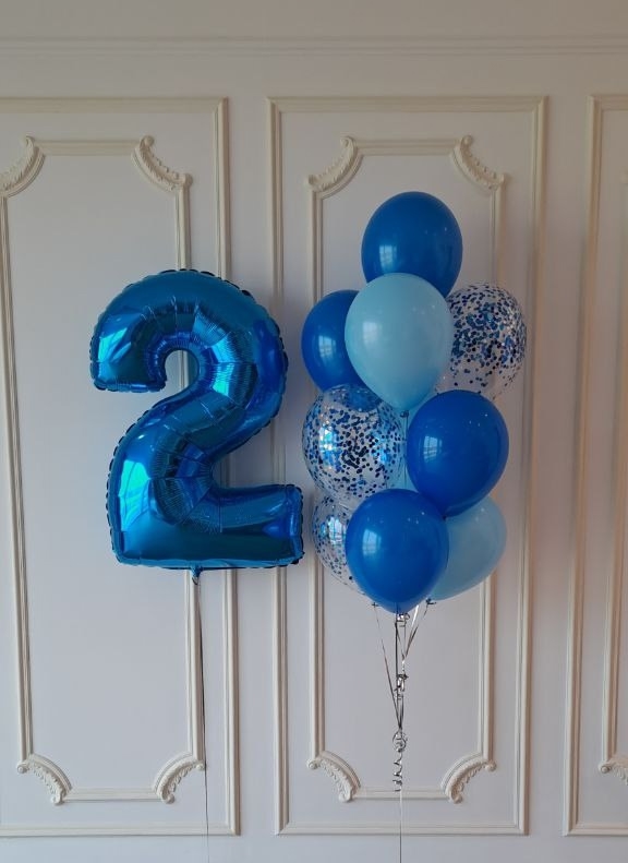 Состав: фольгированная цифра, шары с конфетти, латексные шары, груз для удержания композиции.