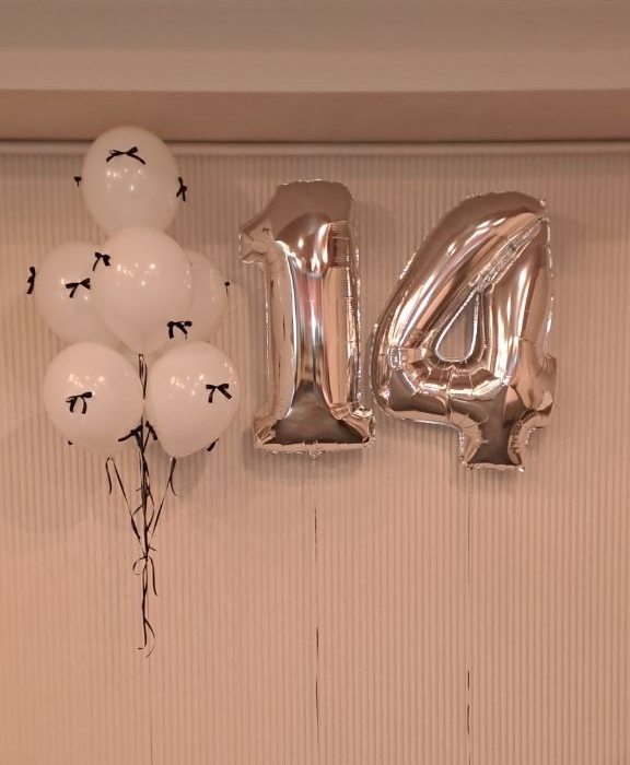 Состав: фольгированные цифры, латексные шары с бантиками. груз для удержания композиции.
